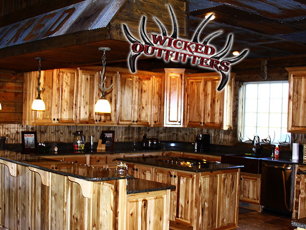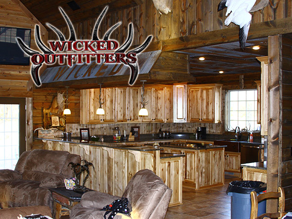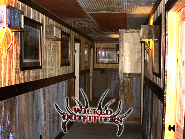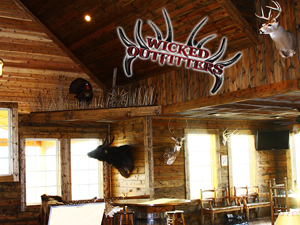 Wicked Outfitters has a 4800 square foot class ‘A’ lodge. There are 5 bedrooms consisting of 1 master bedroom, 3 bunk bed rooms, and 1 secondary master room. Each room has its own bathroom. There is a laundry room, along with indoor and outdoor shooting ranges for your use. We have an adult beverage area for your enjoyment when your evening hunt is over. Our Dinning and Lounging areas have two flat screen TV’s for entertainment during your chosen down times. There is wireless internet available and the majority of the time there is good cell phone serviced to enable you call home if needed.
